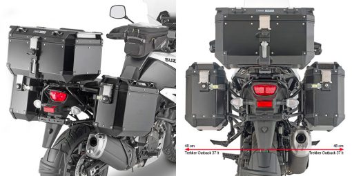 Fahrzeugspezifischer Stahlrohr-Seitenkofferträger PL ONE-FIT für Trekker Outback MONOKEY® CAM-SIDE Koffer.